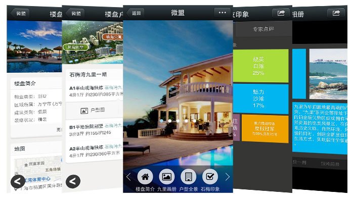 微房产是利用云杉微营家平台打造的一款全新超炫酷的房产官方网站,其功能非常强大,包含了楼盘介绍、子楼盘管理、户型介绍及户型图、楼盘相册、房友印象以及专家点评等功能,更有360度全景看房超强大功能震撼登场!花几分钟时间即可打造微房产官网。