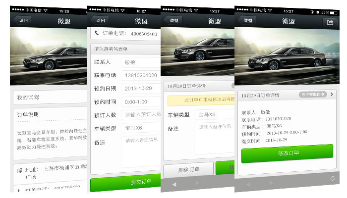 微汽车采用云杉微营家平台进行汽车的销售管理、预约保养、预约试驾、保险计算、车贷计算、车型比较、违章查询、360度全景看车、车主关怀等功能,整个过程非常便捷,省时省力省心,并通过与云杉微营家平台有交互能力的手机客户端,快速便捷的实现了商家的销售管理与预约过程,同时也实现了客户无需进入4s店就能进行预约保养和试驾的功能。